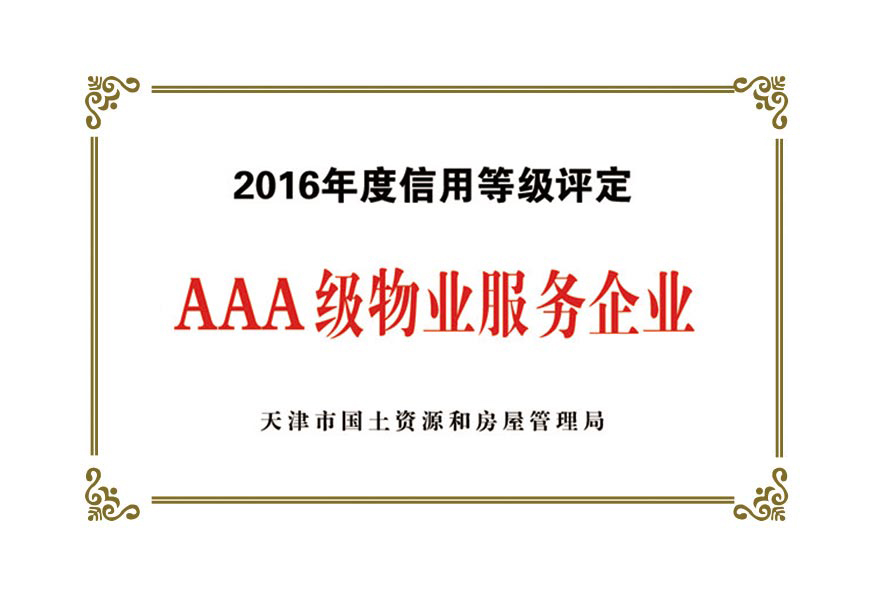 榮譽(yù)資質(zhì):天津市首批AAA級(jí)物業(yè)企業(yè)
